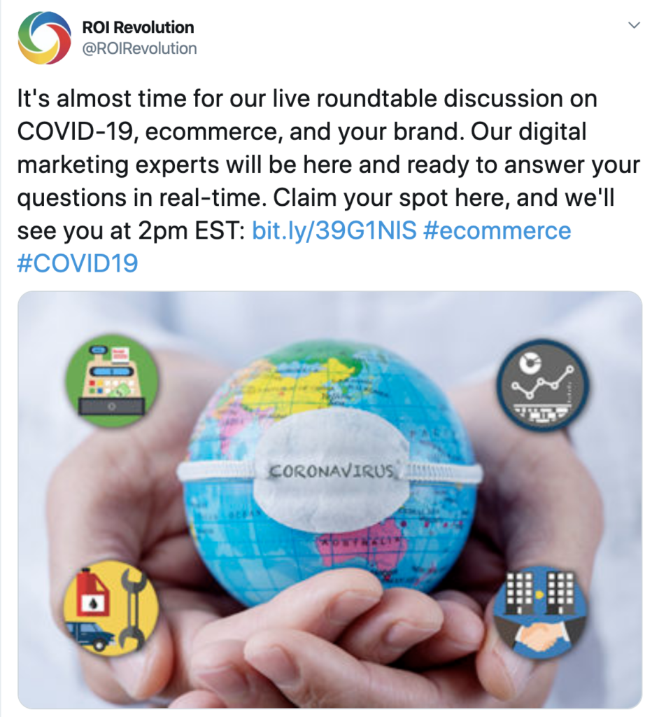 The ROI Revolution team has also created a centralized content page where they’re providing updates on the impact of coronavirus on e-commerce as they come in, which helps establish them as a thought leader in the space and a trusted resource to turn to for timely industry news. They’ve also held roundtables with their team to discuss the impact with clients live.